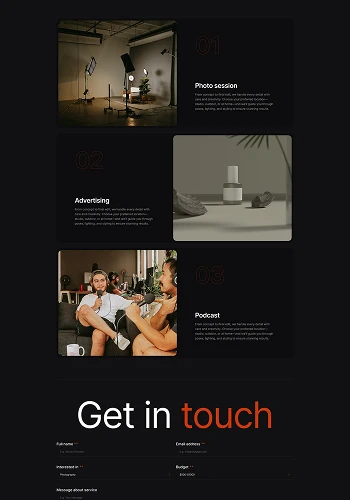 Import a complete property website with one click, or combine 1000+ section blocks to craft a unique showcase for your photography & videography portfolio.